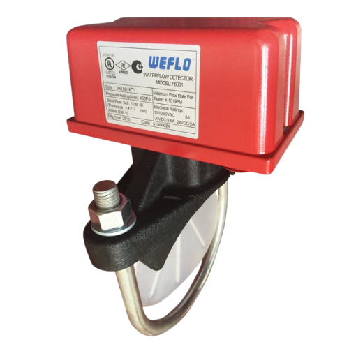 Equipos de supervisión para redes hidráulicas, como indicadores de flujo y presostatos diseñados para operación en interiores y exteriores.